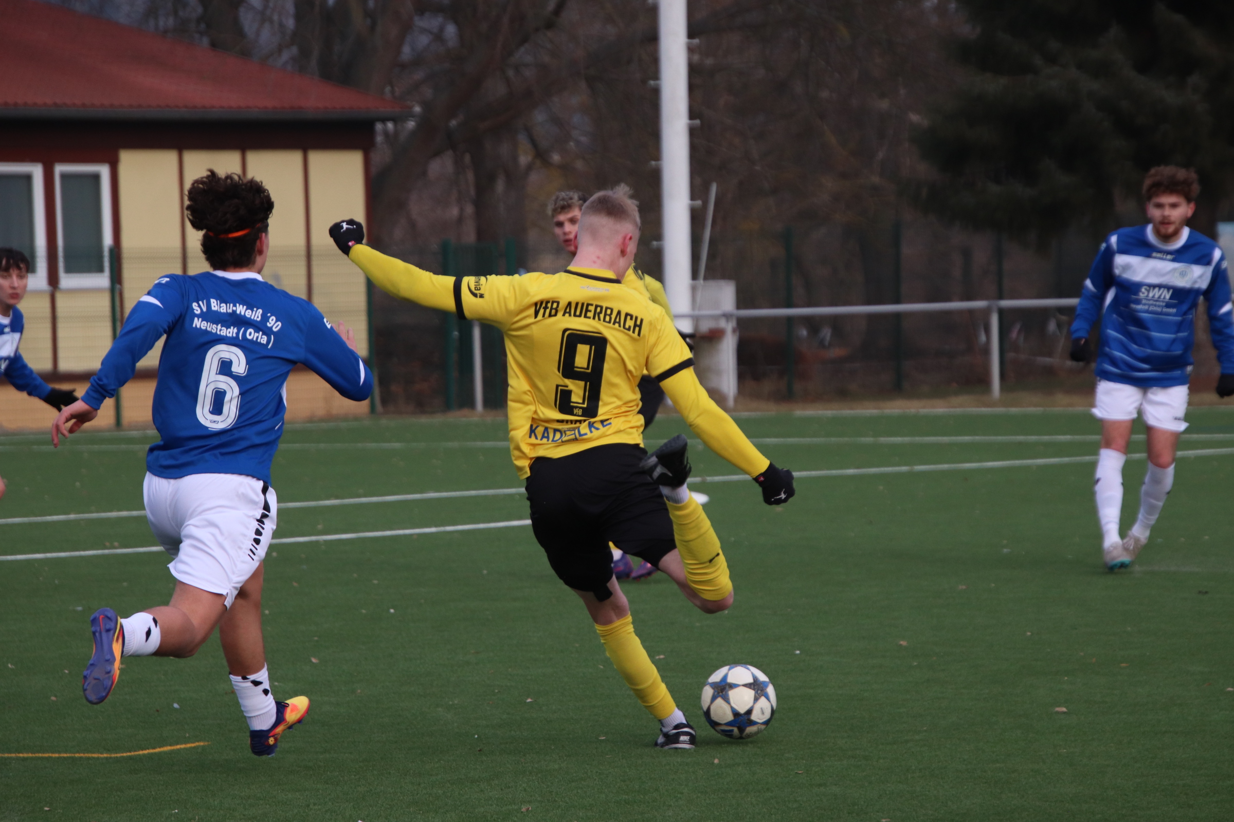 Nach dem Seitenwechsel hatte Auerbach das Spiel weiterhin weitgehend im Griff, leistete sich dann jedoch einen individuellen Fehler, den Neustadt/Orla zum 1:2-Anschlusstreffer nutzte (68.). Die Antwort der Gäste folgte prompt: Der VfB zog das Tempo wieder an und stellte durch zwei weitere Treffer von Cedric Graf (73., 83.) die Weichen endgültig auf Sieg.