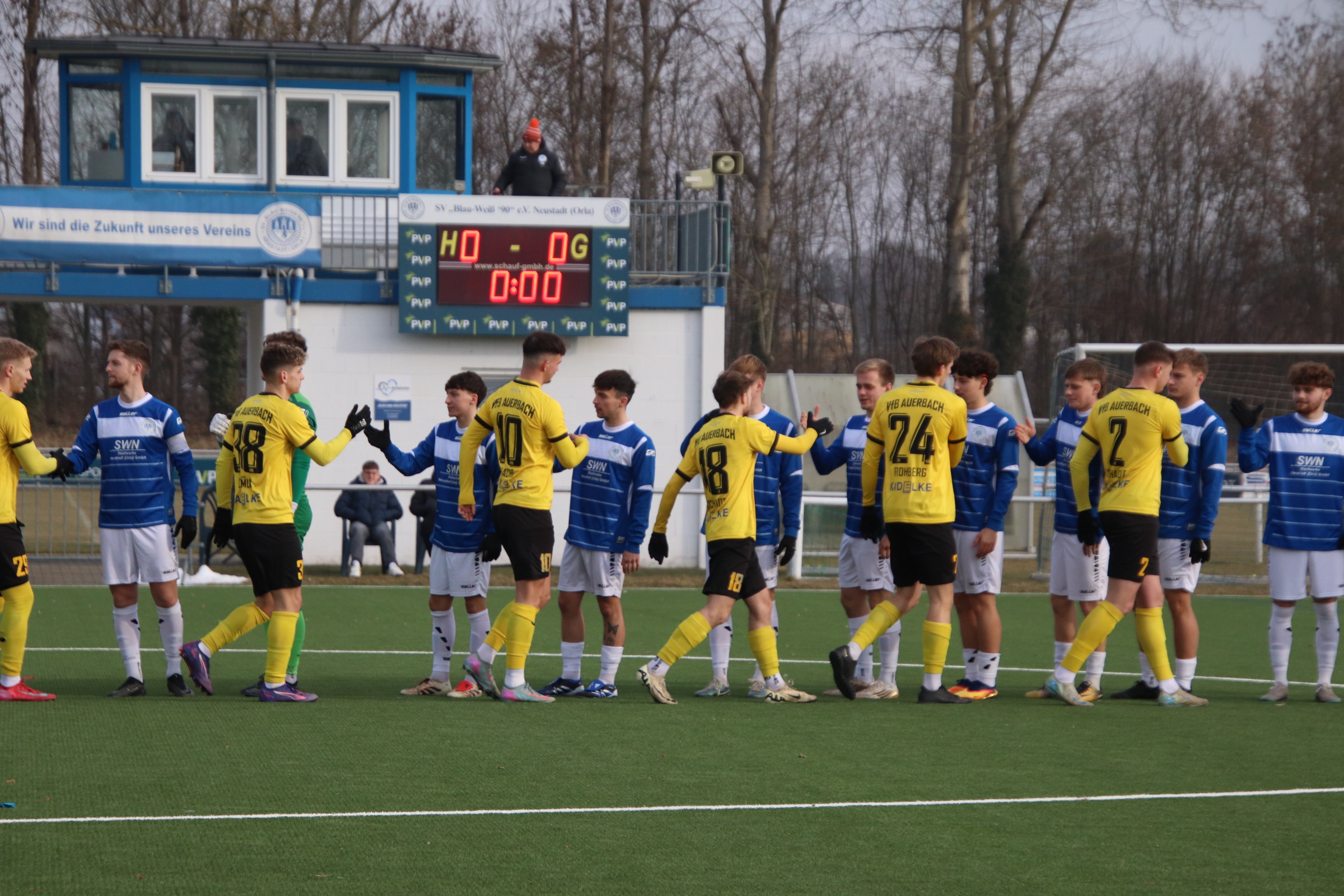 Mit nur zehn Feldspielern, zwei Torhütern sowie zwei A-Jugendlichen auf der Bank reiste der VfB bereits zum dritten Mal in ähnlicher Konstellation an. Entsprechend gestaltete sich vor allem die Anfangsphase etwas zäh. Zwar stand die Auerbacher Defensive sicher, im Spiel nach vorn fehlte zunächst jedoch die letzte Konsequenz und Griffigkeit.